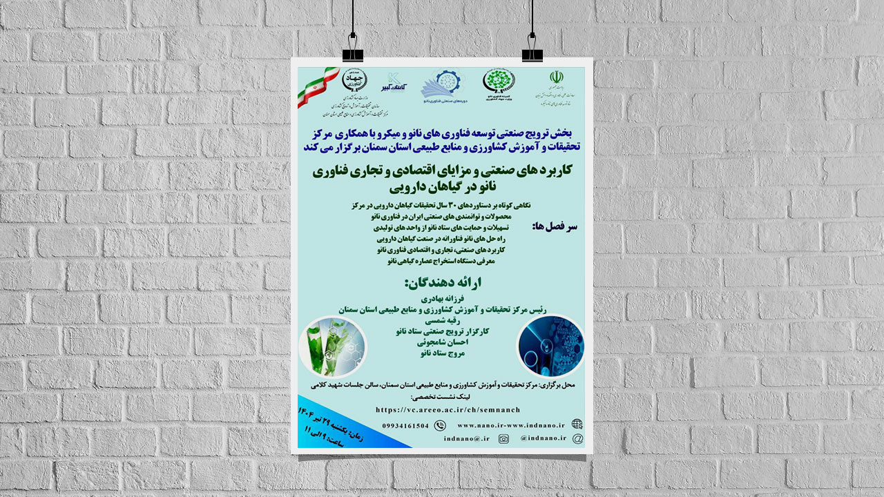 وبینار تخصصی “کاربردهای صنعتی و مزایای اقتصادی فناوری نانو در گیاهان دارویی” با همکاری مرکز تحقیقات کشاورزی سمنان برگزار میشود.